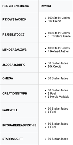 These codes traditionally grant rewards equivalent to 300 Stellar Jades upon use.